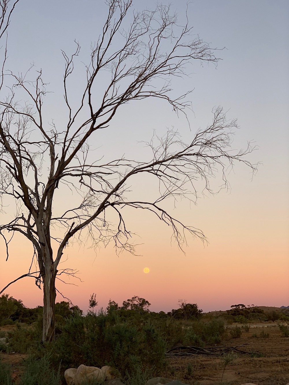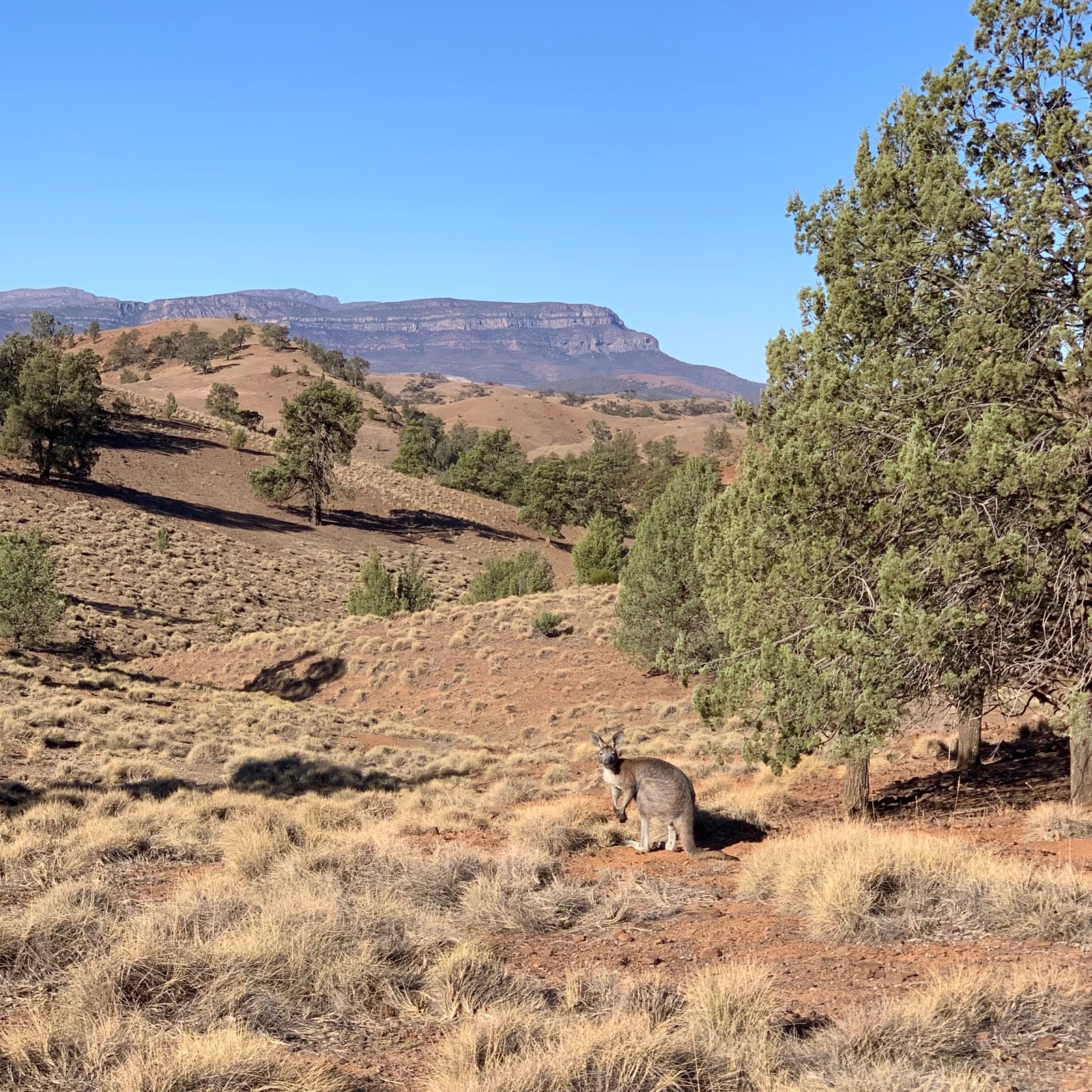This immense area, called Flinders Rangers, is all ours. Like in Afrika, the daily routine exists of an early safari, extended breakfast at the community table and another safari around sunset. Either it be walking or with the open jeep. Kangaroos, emu’s and birds but also the impressive trees like ‘Red Gums’. Eucalyptus trees of which some reach the respectable age of 600 years.|